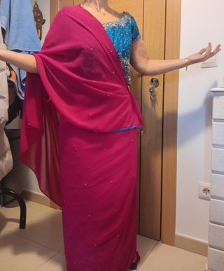 Traje Indú Azul y Rosa