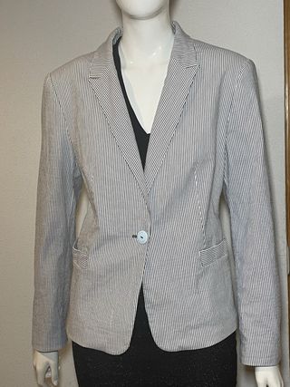 Blazer de Zara Basic a rayas azul marino y blanco. Talla XXL. Mide, de hombro a hombro 44 cm, de axila a axila 52 cm, manga 60 cm, largo 64 cm
