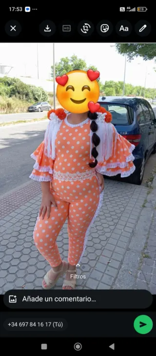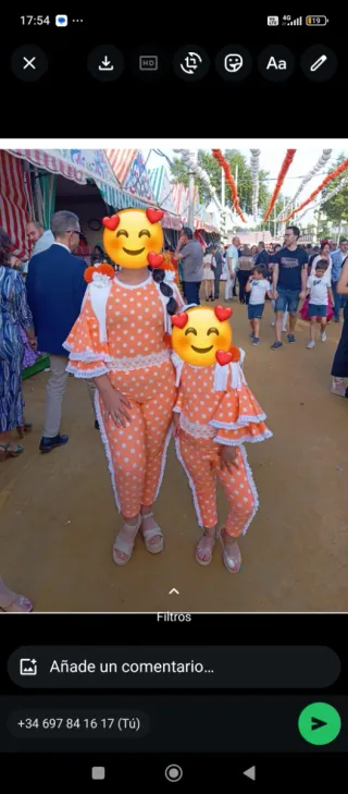 Espectacular traje de flamenca con precioso escote, mangas acampanadas y falda de vuelo con volantes. Detalles de tul en man Tela elástica y súper cómoda. No pesa nada y no mete calor. Perfecto para la feria o para bailes y ensayos. Queda espectacular puesto. Nuevo de tienda, con etiquetas. Pregunta por la talla y el color. Para cualquier duda pregunta sin compromiso ☺️✨ Falda de ensayo, falda de baile, falda flamenca, feria, romeria, feria de abril, feria 2026, moda flamenca, aires de feria, romería, bata rociera, el rocío, flamenco, traje de gitana