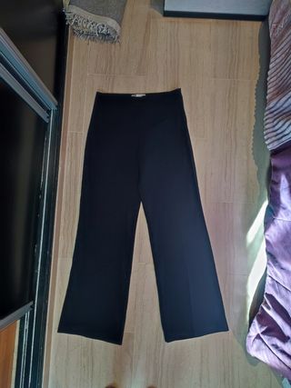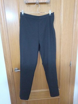 Pantalón color negro con cerradura en cremallera lateral, de Stradivarius. Talla 38, tallaje ajustado. Largo tobillero y muy cómodo. Utilizado en dos ocasiones, se mantiene como nuevo.