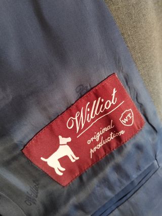 Elegante traje Williot para caballero, en tonos azul y gris. Se encuentra en excelentes condiciones. - Incluye chaqueta y pantalón. - Confeccionado con telas de alta calidad. - Diseño clásico y atemporal. Usado solo una para boda! Estado como nuevo, muy bueno. ( Coste 250€ ) Vendemos por 50€ No hacemos envíos. Solo en Torrevieja!