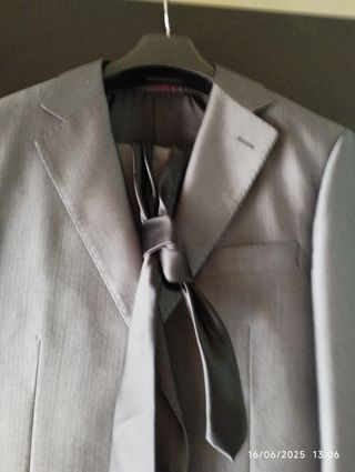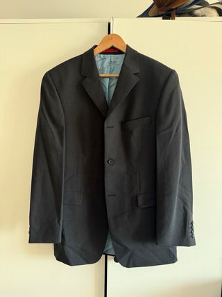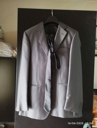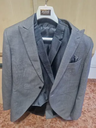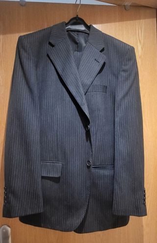 Traje gris de hombre, ideal para eventos especiales. Se encuentra en buen estado. Con funda de viaje los dos - Corte clásico y moderno. - Tejido de calidad. - Incluye chaqueta y pantalón.