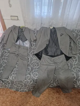 Conjunto de traje de chaquet chaleco pantalón para hombre y niño. Traje de boda corto 1800 un solo uso hacer ofertas justas también se alquila por 200 grande 100 pequeňo - Chaqueta de vestir. - Chaleco a juego. - Pantalón de vestir. -corbata