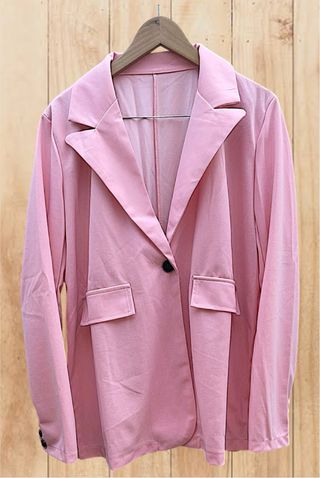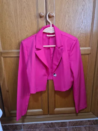Conjunto de Traje Elegante en vibrante color rosa, perfecto para un estilo de negocios moderno o look urbano chic. Este set de dos piezas incluye un blazer de solapa con corte amplio y un solo botón, y pantalones de traje rectos con cintura elástica para un ajuste cómodo. El blazer cuenta con elegantes botones decorativos en las mangas. Medidas • Chaqueta: Hombro 44 cm, Pecho 60 cm, Largo 72 cm. • Pantalón: Cintura 43 cm, Largo 103 cm #TrajeDePantalón #ConjuntoBlazerPantalón #ModaDeNegocios #BlazerRosa #TrajeDosPiezas #EstiloUrbano #TrajeElegante #OutfitOficina #ModaFemenina #PantalónDeTraje #PinkSuit #StreetStyle #FormalChic