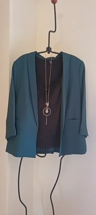 Conjunto de blazer verde y lencera negra. - Blazer de corte moderno en verde de H&M talla 46 en perfectas condiciones - Lencera negra con detalles de encaje de Shein talla 1 XL sin estrenar. - Colgante de regalo