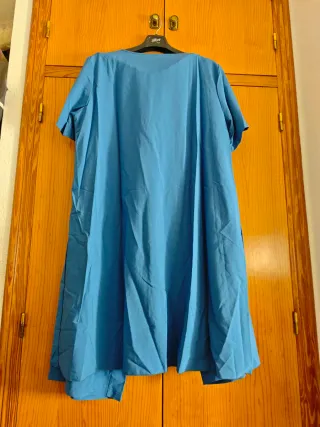 Muy bonito y te doy las medidas: falda talla 42, cintura 94cm, largo 67cm, caderas 112cm. Chaqueta: largo 63cm, ancho 104, manga 62cm, cuello 82cm, espalda 55cm.espero que te guste
