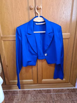 Chaqueta de vestir de la marca Zara en tono azul. Presenta un diseño moderno y detalles distintivos. - Cuello solapa. - Cierre de un botón. - Bolsillos frontales con solapa. - Puños con botones. - Forro interior en contraste.