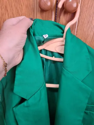 Blazer elegante de color verde. - Diseño clásico con solapas. - Dos bolsillos frontales - Forro interior satinado.