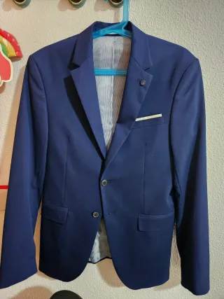 Traje de chaqueta azul de la marca Zara. Usado una vez para una boda - Diseño clásico. - Forro interior negro.