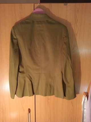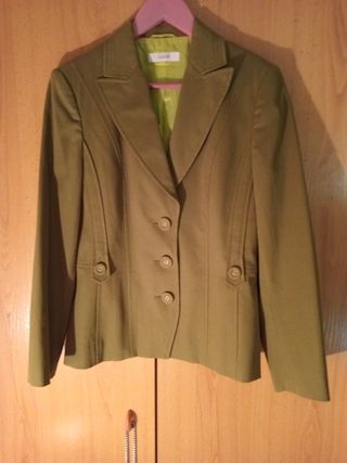 Elegante traje de chaqueta de la marca Laurel en un bonito tono verde oliva. Ideal para ocasiones formales o para añadir un toque sofisticado a tu vestuario. - Diseño entallado. - Cierre de un botón. - Bolsillos con solapa. - Forro interior de color vivo.