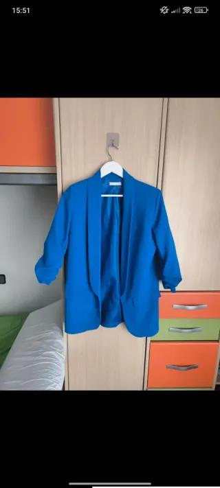 Blazer mujer azul manga 3/4 fruncida