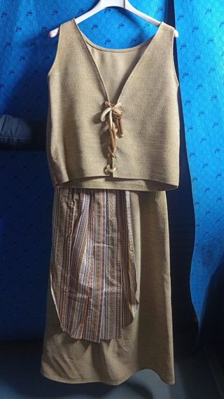 Disfraz de estilo medieval para mujer ideal para fiestas o representaciones. Sobre talla 42 - Chaleco con cordones. - Falda a rayas. 15€ cada uno