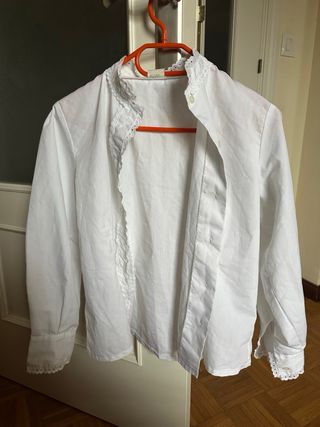 Traje de blusa, vasco, casero. Talla 10. - Chaqueta-blusa negra - Camisa blanca manga larga -pantalon milrayas (azul y blanco)