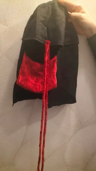 Disfraz de mascarada con un diseño elegante y misterioso. - Vestido con detalles en negro y burdeos.