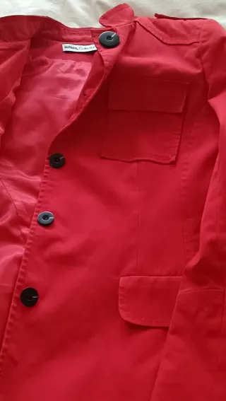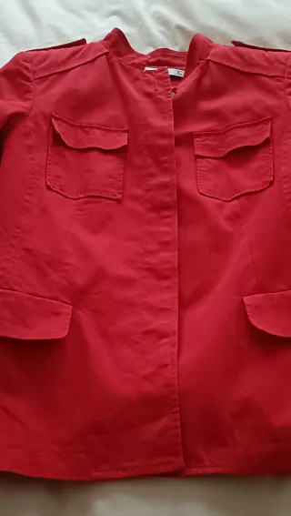 Levita corta de la marca Lefties en color rojo. Presenta un diseño moderno con botones oscuros y bolsillos. Cuello mao - Cierre con botones. - Bolsillo en el pecho. - Bolsillo inferior. Se regala si se compra la cazadora marrón