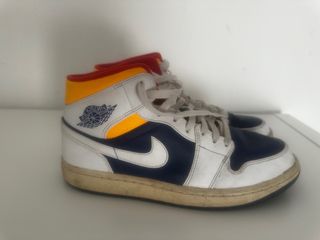 Jordan 1 Mid Azul Blanco Rojo Amarillo