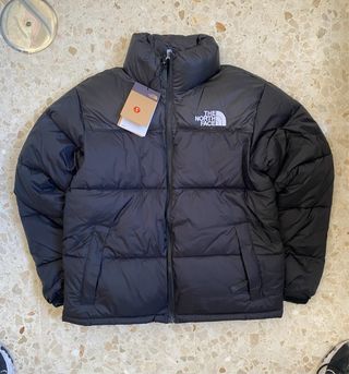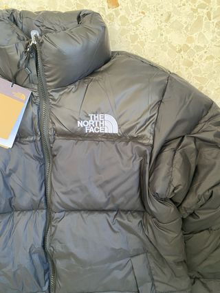 Chaqueta acolchada The North Face de color negro. - Cierre de cremallera frontal. - Cuello alto. - Logo de la marca en el pecho. - Talla XS de mujer. - Impermeable. - Con capucha plegable que se guarda con cremallera. - Bolsillos con forro polar por dentro y también con cremallera.