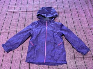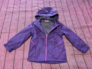 Impermeable color lila. Talla 5 - 6. Butxaques amb cremallera. Punys de les mànigues i caputxa ajustables.