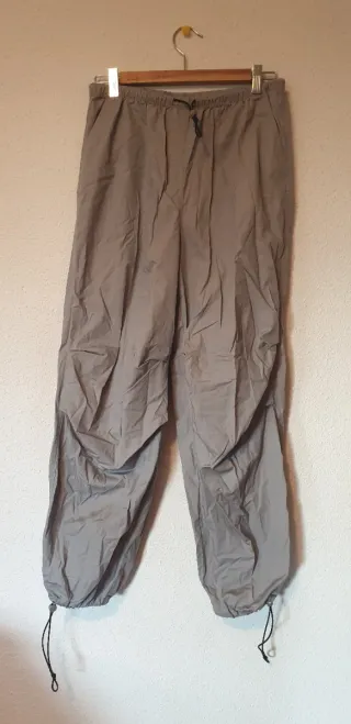 Pantalón largo de H&M en color gris. Presenta un diseño moderno y cómodo. - Cintura elástica con cordón. - Bolsillos laterales. - Tobillos ajustables con cordón.