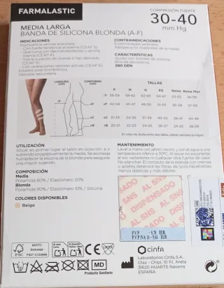 Medias de compresión fuerte con banda de silicona. Talla extra RP (Reina Plus). 6 € unidad. 4 unidades 20€. En su estuche sin estrenar. - Compresión de 30-40 mm Hg. - Media larga. - Banda de silicona blanda. - Presión terapéutica gradual garantizada.