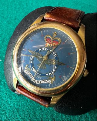 Reloj Alfex Royal Air Force vintage años 80 – Swiss Made Precio 85 € Descripción Reloj Alfex original vintage de los años 80, Swiss Made, con diseño conmemorativo Royal Air Force. 🕰️ Movimiento de cuarzo suizo 🔋 Pila nueva puesta hoy, funcionando correctamente ✨ Esfera azul original Alfex ⌚ Caja dorada, reloj usado con marcas normales del tiempo (ver fotos) Ideal para coleccionistas, amantes de relojes militares o vintage suizos. 📦 Entrega en Tres Cantos o envío a través de Wallapop 💬 Atiendo dudas o envío más fotos Etiquetas: #Alfex #RoyalAirForce #SwissMade #relojvintage #militar #años80