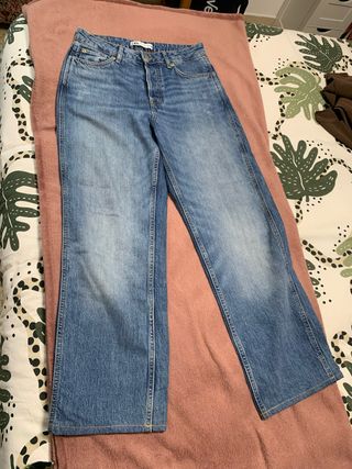 Vaqueros de corte recto de la marca Zara. - Tiro alto. - Cierre de botones. - Bolsillos delanteros y traseros. Puestos solo una vez