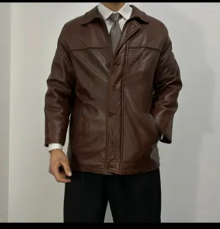 Chaqueta de piel de estilo vintage. Un clásico atemporal para cualquier guardarropa. - Material: Piel auténtica. - Color: Marrón. - Diseño: Cuello clásico y cierre de botones.
