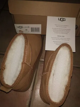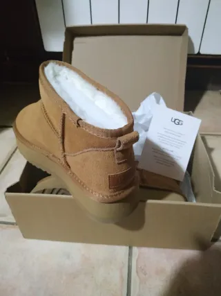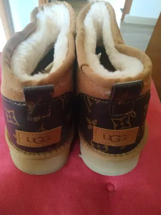Botas de la marca UGG en color beige y marrón. Perfectas para mantener los pies calientes. - Exterior de ante. - Forro interior de borreguito. - Suela de goma. - Detalle de logo en el talón.