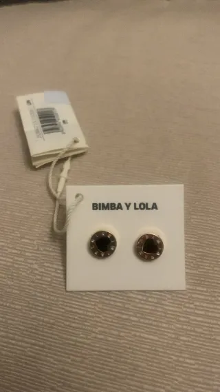 Pendientes de la marca Bimba y Lola con un diseño de corazón negro. - Metal dorado. - Detalle de corazón negro en el centro. - Adornados con pequeñas piedras de colores.