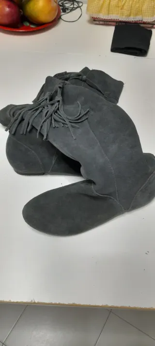 Botas altas ante grises con flecos