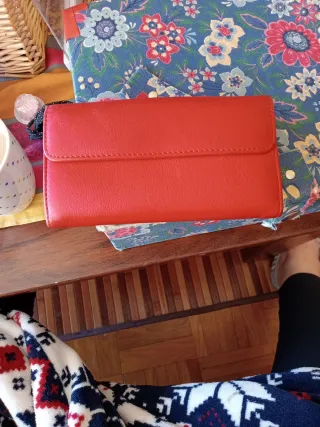 Elegante monedero de piel con un diseño moderno. - Material: Piel. - Color: Rojo. - Detalle frontal con logo de la marca.