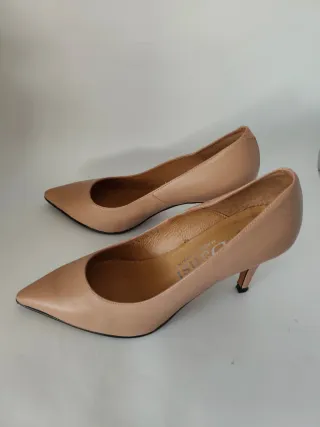 Elegantes zapatos de tacón de la marca Dansi. Sin caja original. Como se ven en las fotos. Color nude. - Diseño de punta fina. - Tacón de altura media. - Fabricados en España.
