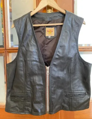 Chaleco de cuero con el logo de Hard Rock Cafe y Mexico bordado. - Diseño clásico de chaleco. - Detalle de cinturón ajustable en la parte trasera con hebilla metálica. - Material de cuero suave.