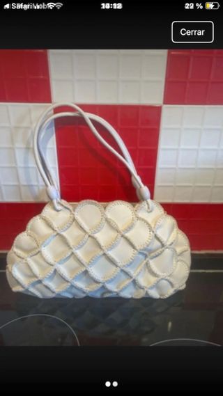 Bolso de mano con un diseño trenzado y escamas. - Material: Piel - Color: Blanco - Cierre: Cremallera - Asas: Dobles