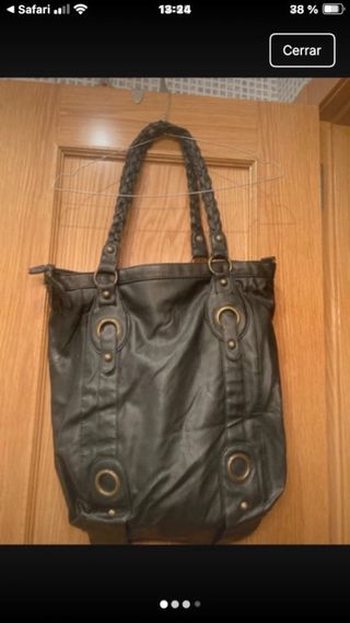 Bolso de mano de la marca Stradivarius. - Diseño con arandelas metálicas. - Asas trenzadas. - Cierre de cremallera.
