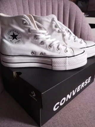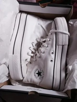 Vendo zapatillas Converse All Star Lift (modelo con plataforma) en color blanco. Están en estado impecable, muy poco uso y cuidadísimas. Se nota tanto en la lona como en la suela: blancas, limpias y sin desgaste apreciable. Detalles: Talla: 39 Estado: Como nuevas Incluye su caja