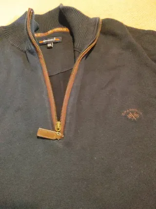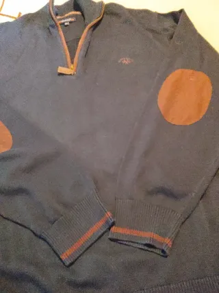 Jersey de punto con detalles de cuero en los codos y cuello con cremallera. - Color principal negro. - Detalles en color marrón. - Cuello con cremallera. - Parches en los codos.