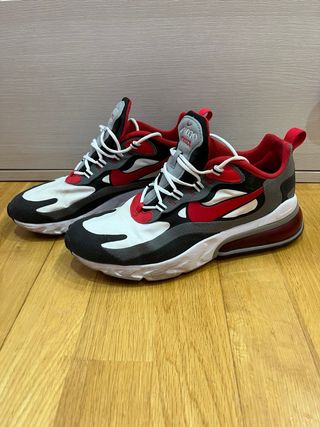 Zapatillas deportivas Nike React en talla 42. Combinan gris, rojo y blanco para un look moderno. - Diseño deportivo y cómodo. - Suela con tecnología React para amortiguación.