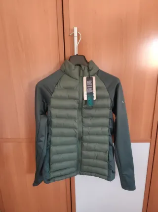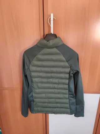 Chaqueta de Born Living Yoga en color verde. Diseño moderno y funcional. - Cuerpo acolchado. - Mangas de tejido técnico. - Cremallera frontal. Nueva con etiquetas. Talla S ajustada. Tiene un pequeño fallo de fabrica en la parte superior de la manga (ver foto). Casi ni se aprecia.