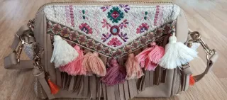Bolso bandolera beige y rosa con flecos