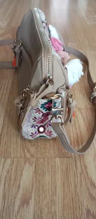 Bolso Parfois floral beige y rosa