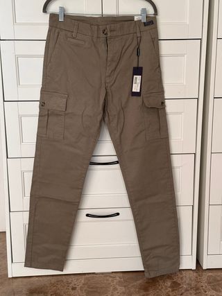 Pantalón cargo de la marca Harper & Neyer, nuevo y con etiqueta. - Diseño de corte recto. - Bolsillos cargo en los laterales. - Cierre de botón y cremallera. Era un regalo de navidad. Una oportunidad para adquirirlo a mejor precio con un 24,6% de descuento Su precio de venta al publico PVP:69€