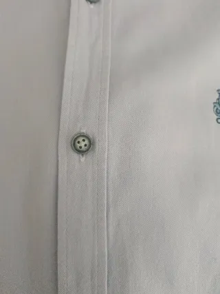 Camisa de manga corta con un diseño moderno y detalles al tono en cuello, puño y tapeta. - Cuello con botones. - Bordado de una vespa en el pecho.