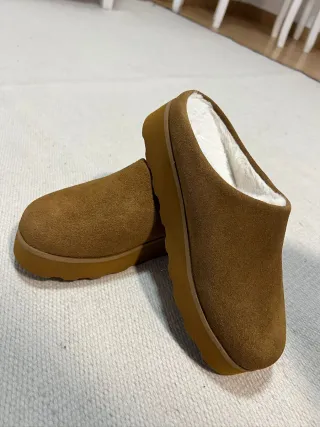 Zuecos de serraje con interior forrado de pelo. - Material exterior: Piel. - Forro interior: Pelo sintético. - Suela de goma.