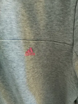 Chaqueta deportiva Adidas con un diseño moderno. - Color gris principal. - Detalle de logo en color rosa en la manga.