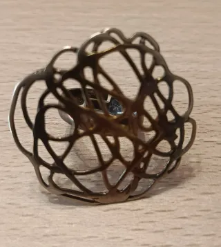 Sortija de plata con un diseño abstracto y moderno. Su tamaño es ajustable para adaptarse cómodamente a cualquier dedo. Marca Fink Orfebres - Nuevo con estuche original. - Elaborada en plata. - Diseño calado y orgánico.