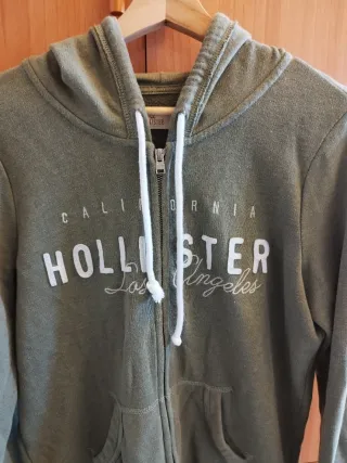 Chaqueta con capucha de la marca Hollister. - Cierre de cremallera. - Bolsillos delanteros. - Logo de la marca en el pecho.