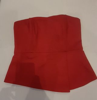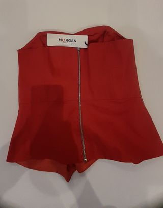 Corsé de la marca Morgan, sin estrenar y en perfecto estado. - Diseño sin tirantes. - Corte peplum. - Color rojo vibrante. - Se ciñe al cuerpo