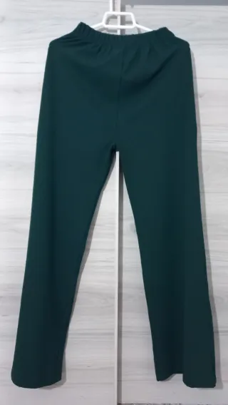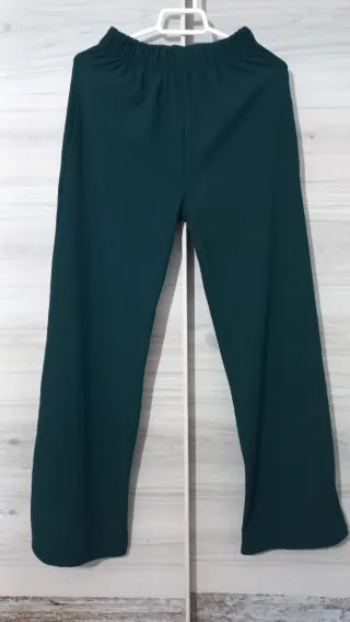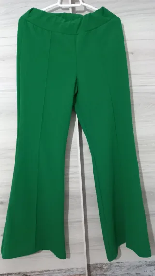 Pantalón de corte acampanado en color verde. - Talla M. - Diseño de pierna ancha. - Cintura elástica.