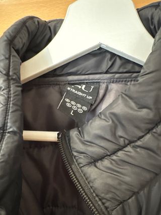 Abrigo acolchado de color negro, perfecto para mantenerte abrigado. - Cierre de cremallera. - Cuello redondo. - Bolsillos laterales.